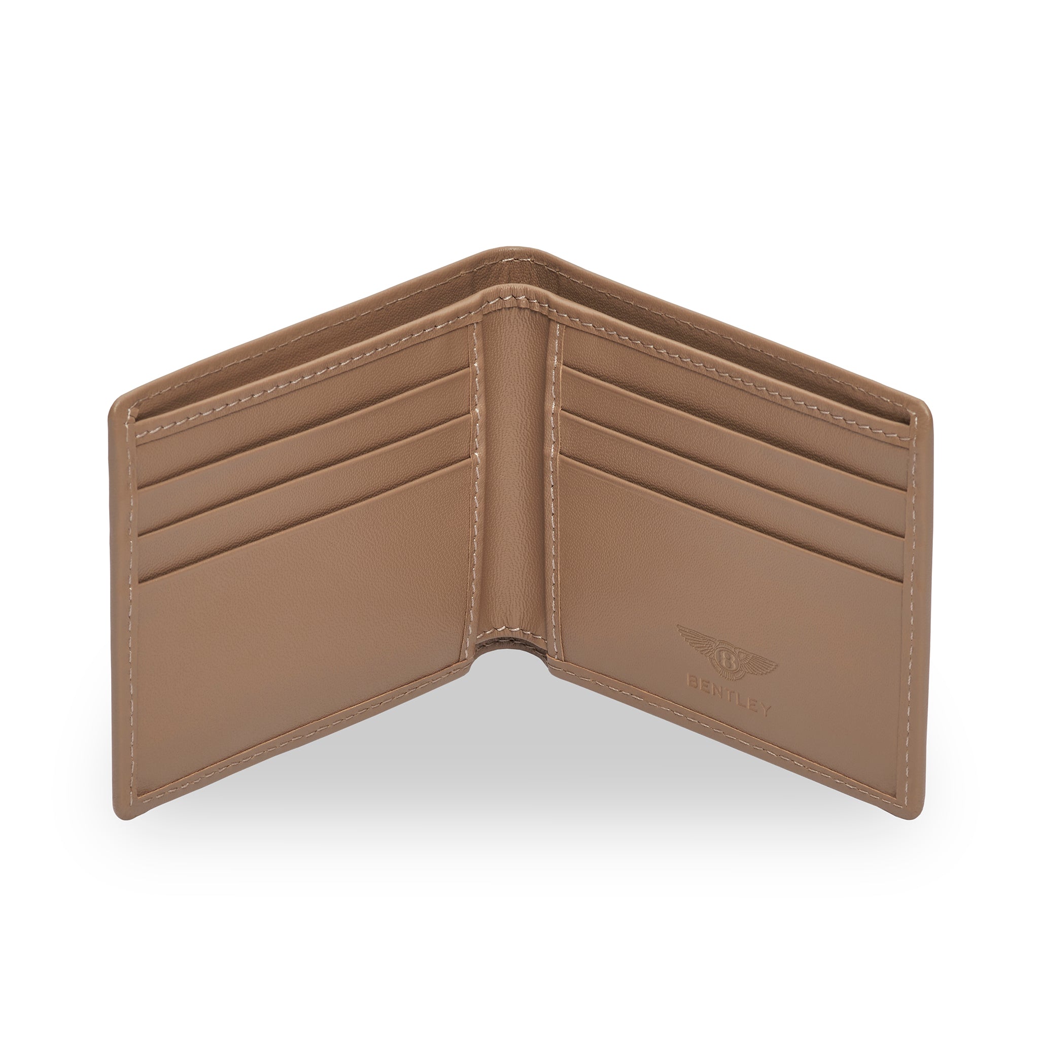 Crafted from Italian leather, this traditional wallet opens to reveal six card pouches and two sections for cash and receipts. Available in Black, Green, Burnt Oak, Claret and Caramel, the soft-grained calf leather exterior features a debossed Bentley emblem, whilst the smooth leather interior features a debossed logo in silver foil. A smart addition to your everyday accessories collection.