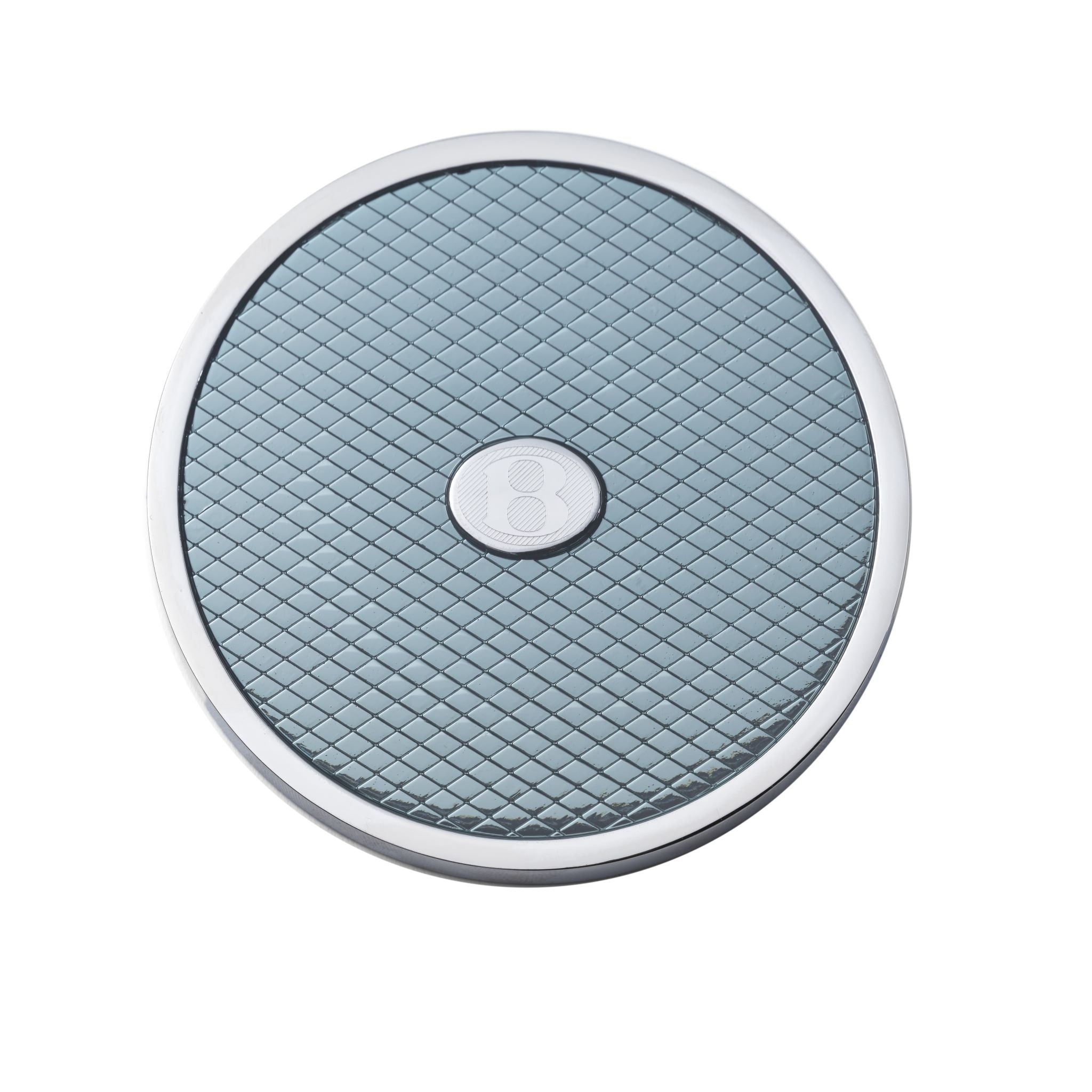 Carefully crafted, the set comprises of two coasters and a bottle stopper all featuring an engraved signature Bentley ‘B’ and an enamel infill over a diamond knurling design which reflects light and colour beautifully.
